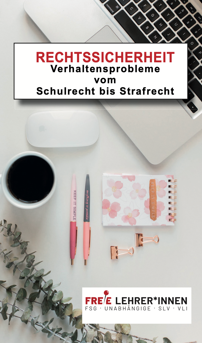 Zur Unterstützung der Lehrpersonen im Bereich Rechtssicherheit gibt es fünf Broschüren. In diesem Heftchen "Konfliktmanagement an Schulen" werden Themen wie Mitwirkung der Schule an der Erziehung, Weisungsrecht, Rechte und Pflichten der SchülerInnen/LehrerInnen/Eltern, Suspendierung, strafrechtliche Bestimmungen, Krisenplan und Hausordnung behandelt.